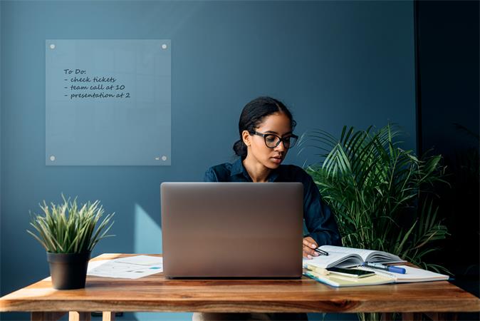Mini tabuľa s moderným, bezrámovým dizajnom, pre domáce a kancelárske použitie, na písanie poznámok, zapisovanie myšlienok, nápadov alebo dôležitých dátumov. Cez rohy sa dá namontovať na stenu a vďaka priehľadnému dizajnu nepozorovane zapadne do okolia, keď sa nepoužíva. Ľahko čistiteľný povrch; stačí naň napísať a zmazať. - dá sa nasucho stierať - príslušenstvo: 1 popisovač na tabule - rozmer: 300x300 mm - možno inštalovať vertikálne alebo horizontálne - záruka 1 rok na povrch
